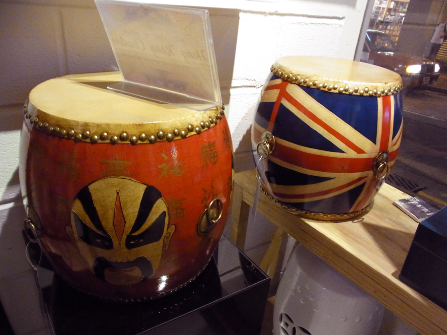 09 November 香港で見つけた 中環、ミッドレーベルエスカレータ下の泰昌餅家の隣のインテリア雑貨屋さんで見つけたなんとも可愛いもの。太鼓、太鼓ですよ。ユニオンジャックと京劇柄の太鼓ですよ。アサホンっスよ。 とてもおしゃれで素敵なお店でした。http://www.homeessentials.com.hk/